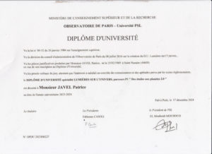 Études universitaires en cosmologie et astrophysiques